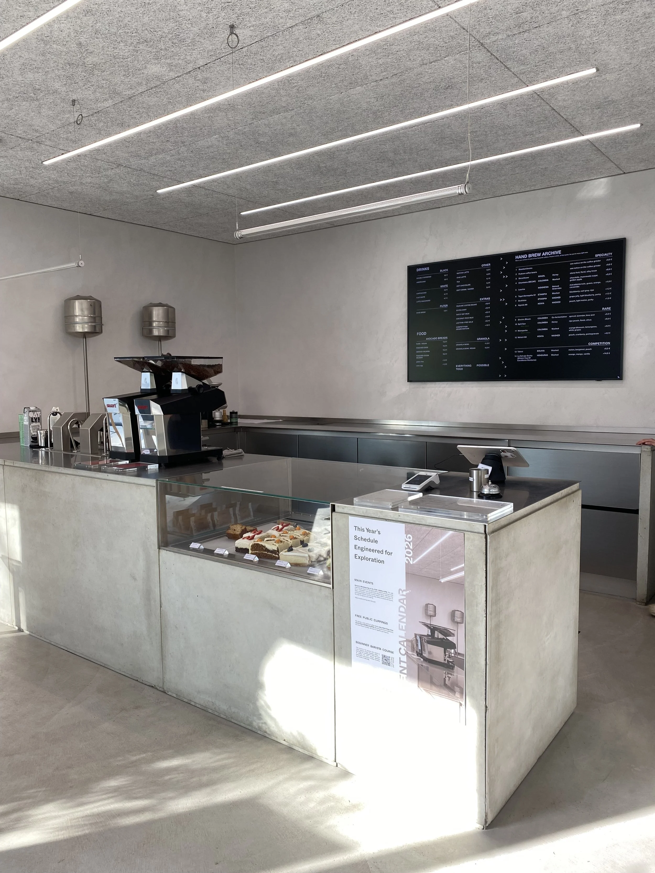 The aesthetics are precise and restrained, yet the atmosphere is created by the people who enter, by the coffee drinker, the visitor, and the rhythm they bring. How you occupy the space, how long you linger, the gestures you make — these are what give it life.